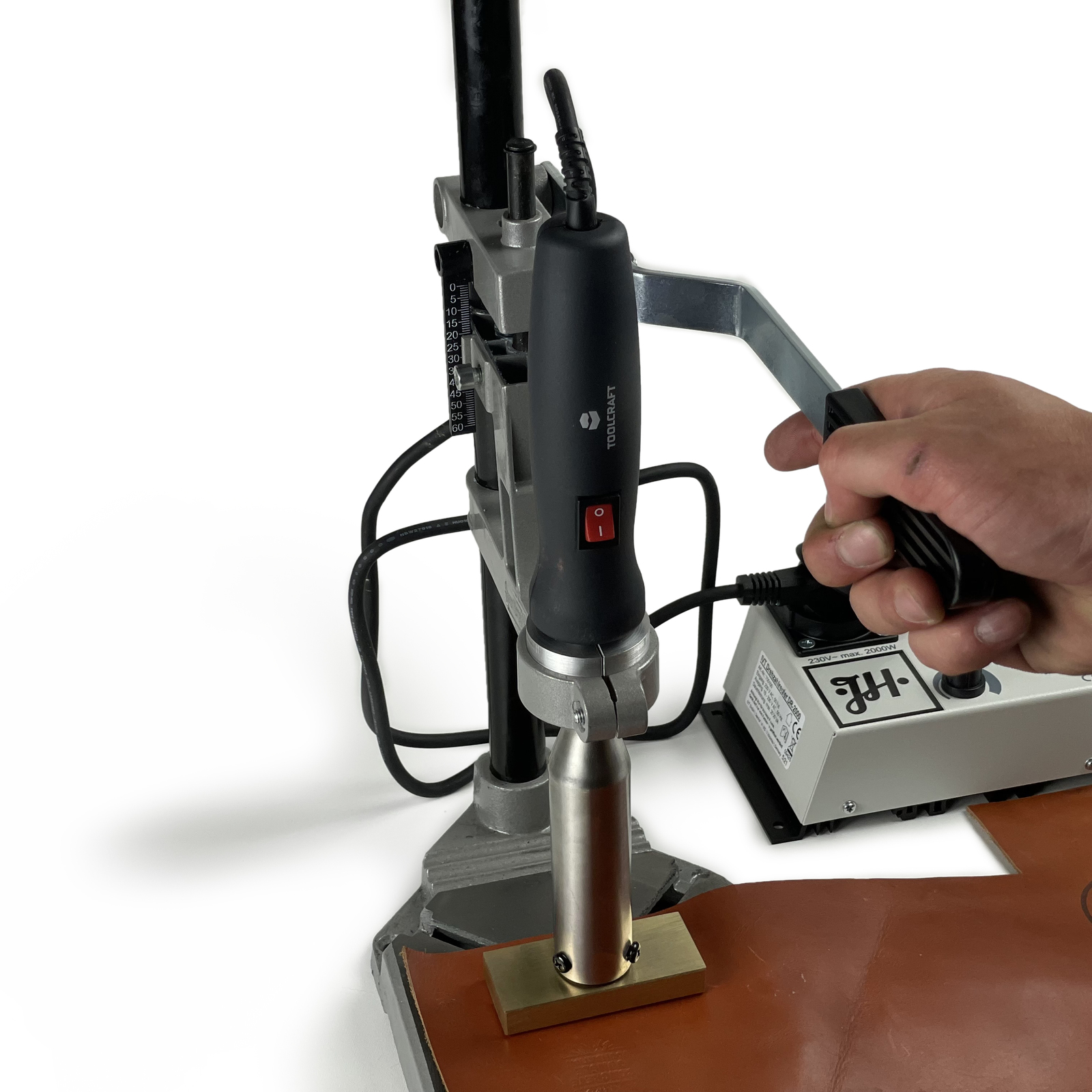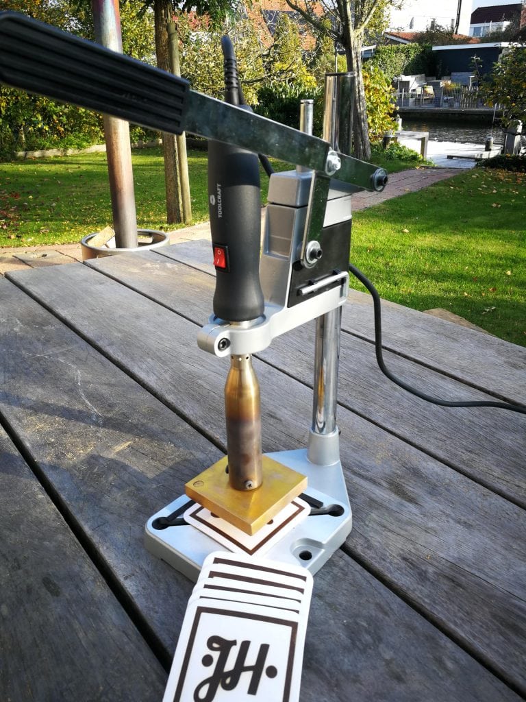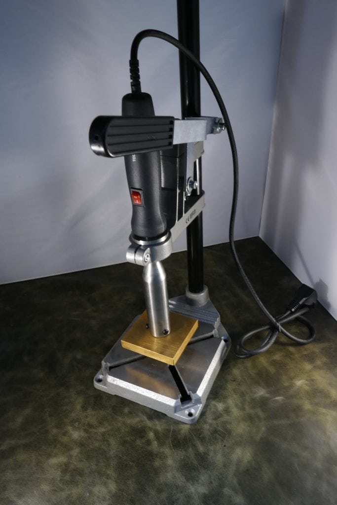 Met de standaard voor de elektrische brandstempel, kun je precies brandmerken. De standaard werkt alleen voor elektrische brandstempels. De standaard werkt uitsluitend voor JH Machining brandstempels. We raden de standaard aan als je: